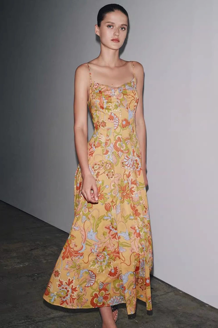 여성용 면 여름 꽃무늬 드레스는 연한 오렌지색 베이스 컬러로, 풍부한 질감의 꽃무늬 프린트가 전체 표면을 덮고 있습니다. 따뜻하고 부드러운 톤이 생기를 불어넣어 마치 만발한 여름정원을 온몸에 얹은 듯한 느낌을 줍니다. 레트로한 로맨틱한 분위기와 여름의 여유로운 느낌을 결합했습니다. 실루엣은 민소매, 목에 걸치는 디자인이 특징으로 깔끔하고 산뜻한 라인으로 어깨와 목선을 교묘하게 드러내며 균형 잡힌 몸매를 연출하는 동시에 반팔의 제약에서 벗어나 무더운 여름의 옷차림 수요를 만족시킨다. 스커트 밑단은 루즈하고 적당하며 체형을 가리지 않으며, 허리, 복부, 다리의 작은 결점도 쉽게 감출 수 있어 모든 체형의 여성에게 매우 친화적입니다. 레트로한 프린트와 날렵한 실루엣의 완벽한 조합으로 여성스러운 여성스러운 매력을 보여줄 뿐만 아니라, 캐주얼하고 여유로운 스타일을 유지하며, 단 하나의 의상이 갖는 한계를 뛰어넘어 다양한 스타일에 적응하여 창작이 가능한 드레스입니다.
