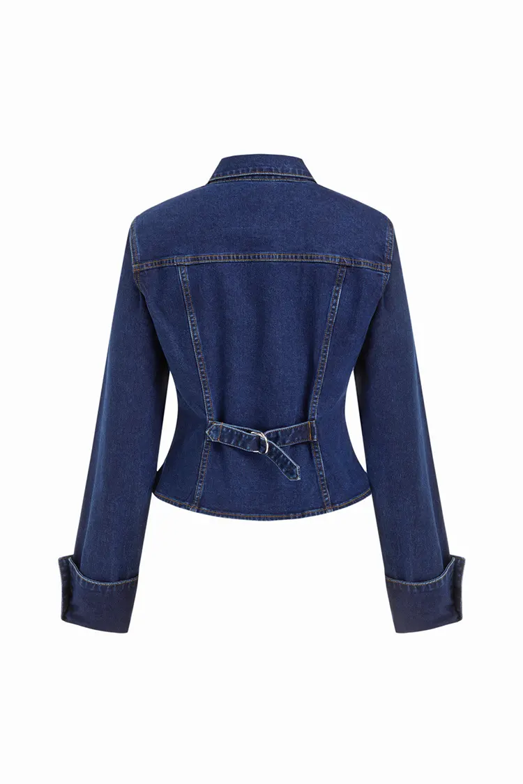 여성용 워시드 데님 라펠 버튼 포워드 가디건