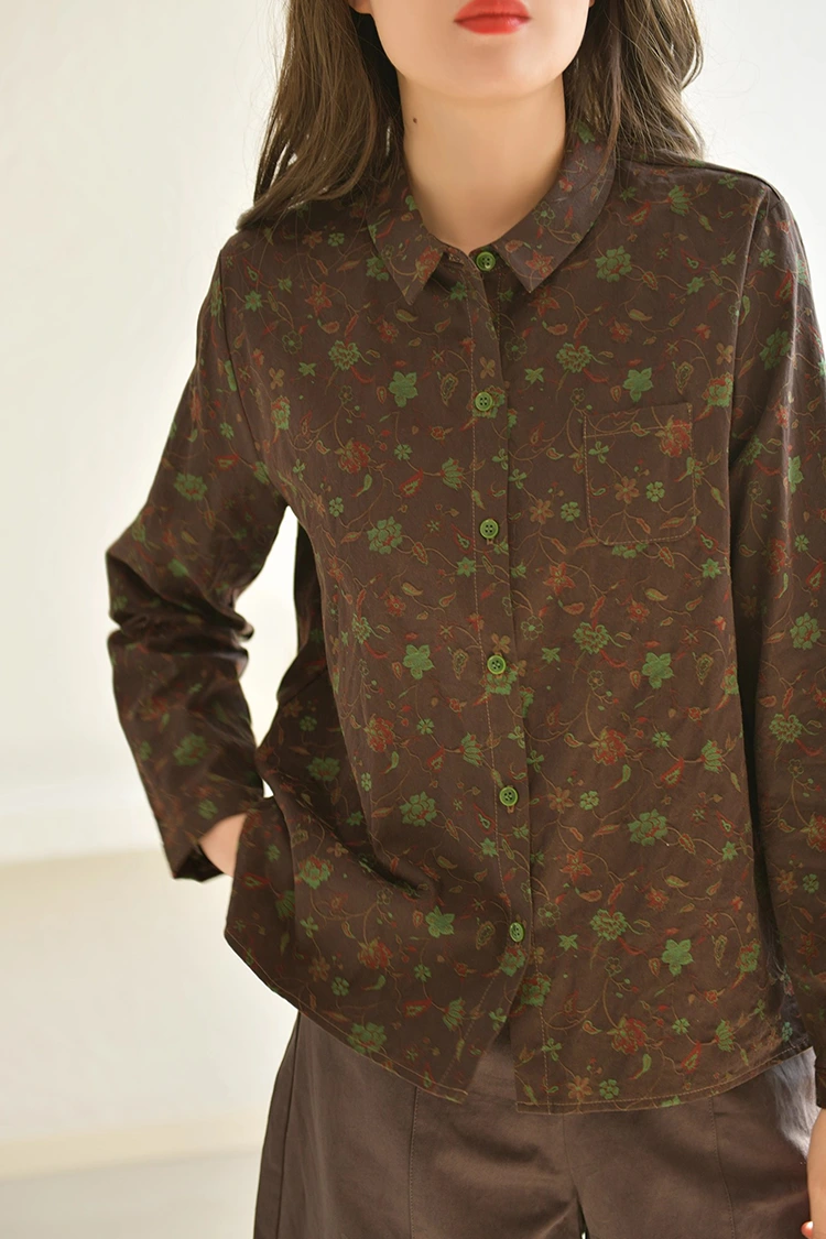 여성용 꽃무늬 캐주얼 블라우스는 유럽과 미국 시장에 맞는 복고풍 미적 디자인을 채택했습니다. 패턴의 포용성을 고려하면서 예술적이고 복고적인 스타일을 추구하는 현지 소비자의 취향을 정확하게 포착했습니다. 다크 브라운 베이스 컬러에 레트로한 덩굴 패턴 프린트가 돋보이는 셔츠입니다. 색조가 안정적이고 웅장하여 우아한 예술적인 분위기를 연출합니다. 일반적인 인쇄 스타일과 달리 유사한 제품 사이에서 빠르게 눈에 띄고 매장 차별화 이점을 창출할 수 있습니다. 패턴은 심플한 작은 옷깃 디자인을 채택해 심플하고 우아하며 유럽과 미국의 캐주얼한 옷차림 스타일에 잘 어울린다. 루즈한 어깨 디자인은 다양한 체형에 적합하며 체형에 까다롭지 않고 어깨 너비, 허리, 복부를 효과적으로 수정할 수 있어 유럽과 미국의 다양한 체형 소비자에게 적합하며 단말기 판매 고객을 크게 확대하고 구매 반품률을 향상시킵니다.