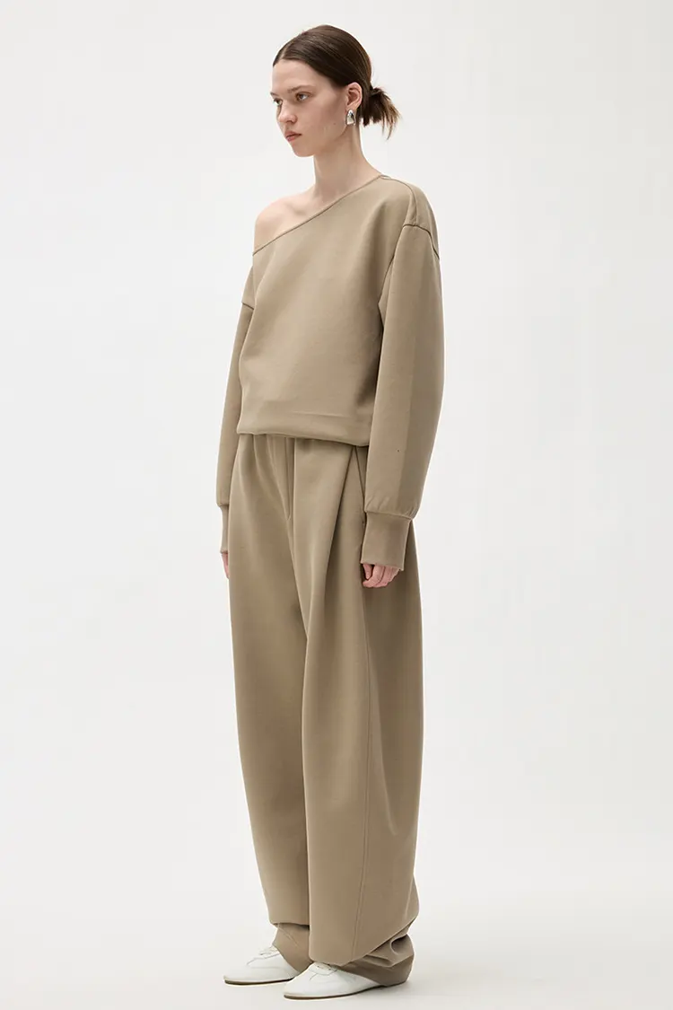 바지 허리밴드 전체가 플리츠 기술로 디자인되었습니다. 루즈하고 편안한 핏으로 우아한 스타일을 연출합니다. 다양한 다리 모양을 아름답게 연출할 수 있으며 다리 라인의 유연성도 높습니다. 루즈한 와이드 레그 컷은 체형에 구애받지 않아 시각적으로 다리를 더욱 날씬하고 일자로 보이게 만들어줍니다. 걸을 때 입체 재단이 자연 스럽습니다. 캐주얼팬츠의 캐주얼하고 자유분방한 느낌을 그대로 유지하면서 와이드팬츠의 깔끔하고 우아한 느낌을 살린 제품입니다. 일반 스웨트팬츠와는 다르게 패션감이 강하고 세련된 느낌이 강합니다. 타겟 고객이 광범위하고 판매 전환율이 안정적입니다.