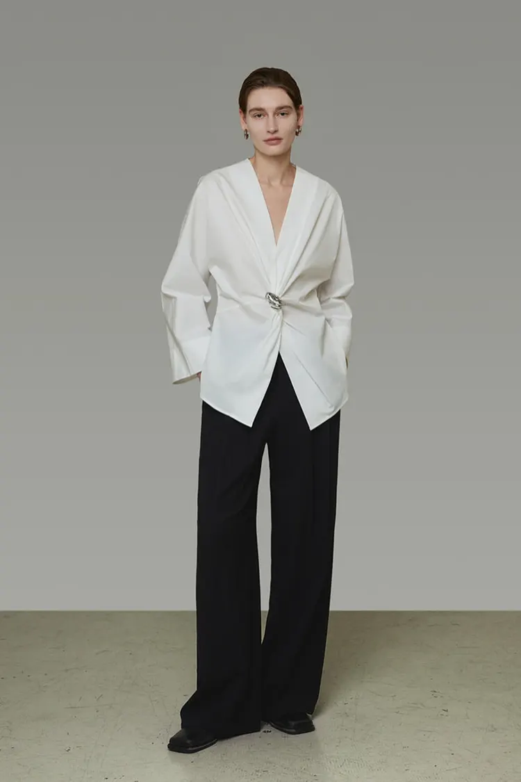 여성용 메탈 버클 파티 블라우스는 장식용 3차원 금속 단추와 결합된 비대칭 허리 매듭이 특징입니다. 자연스럽게 허리라인을 강조하고 곡선을 강조해 시각적인 초점이 돋보입니다. 또한 주름을 사용하여 체형을 부드럽게 만들어 다양한 체형에 맞게 높은 수준의 유연성을 제공합니다. 크로스된 브이넥이 깔끔하고 우아하며, 가벼우면서 무너지지 않는 뽀송뽀송하고 부드러운 원단으로 제작되었습니다. 데일리 룩으로 입기 좋은 셔츠의 실용성과 파티 탑의 패션성을 결합해 활용도가 높고 강렬한 시각적 인지도를 자랑합니다.